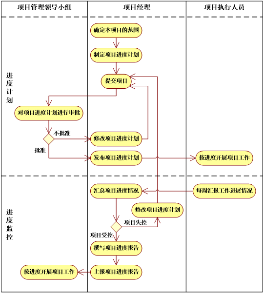 項目進度計劃由項目管理小組提交給項目領導小組審批。