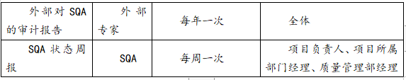 (5)SQA人員每周應向項目負責人及質量管理部經理提交《SQA狀態周報》,匯報SQA人員的工作及項目遇到的問題和風險。