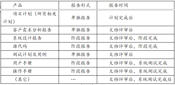 (1)SQA人員確定報告評審結果的時機及報告對象。SQA報告的種類及報告時機和頻度見下表: